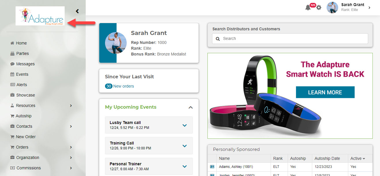 Below is an example of the Reps BackOffice if a logo that does not have a transparent background is provided.